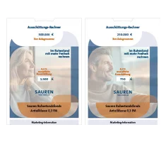 Mit dem Ausschüttungs-Rechner im vertrauten Alltagsformat lässt sich die monatliche Ausschüttung des Sauren Ruhestandsfonds 0,3FM praktisch "erleben". Er ist in zwei Varianten verfügbar und eignet sich als besondere vertriebliche Unterstützung, damit auch Ihre Kunden im Ruhestand ganz einfach mit mehr Freiheit rechnen können.