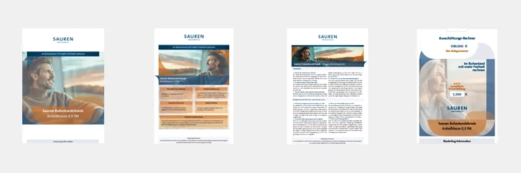 Das Informationspaket zum Sauren Ruhestandsfonds, das Sie mithilfe des Materialbestellscheins bestellen können, enthält alle wichtigen Details zum Sauren Ruhestandsfonds und der monatlich ausschüttenden Anteilklasse 0,3 FM für Ihre Beratung.