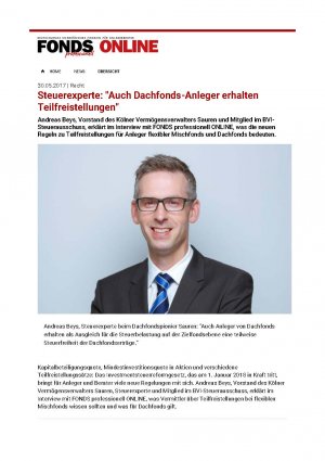 Für weitere Fragen zum neuen Investmentsteuergesetz 2018 können Sie sich auch gerne direkt an unseren Steuerexperten und BVI-Mitglied Andreas Beys wenden.