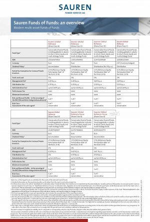 Sauren offers various modern multi-asset funds of funds, equity-oriented funds of funds and absolute return funds of funds. There are now 14 Sauren funds of funds with different risk-return profiles offering attractive investment solutions which have repeatedly received awards for their sustained above-average Performance.